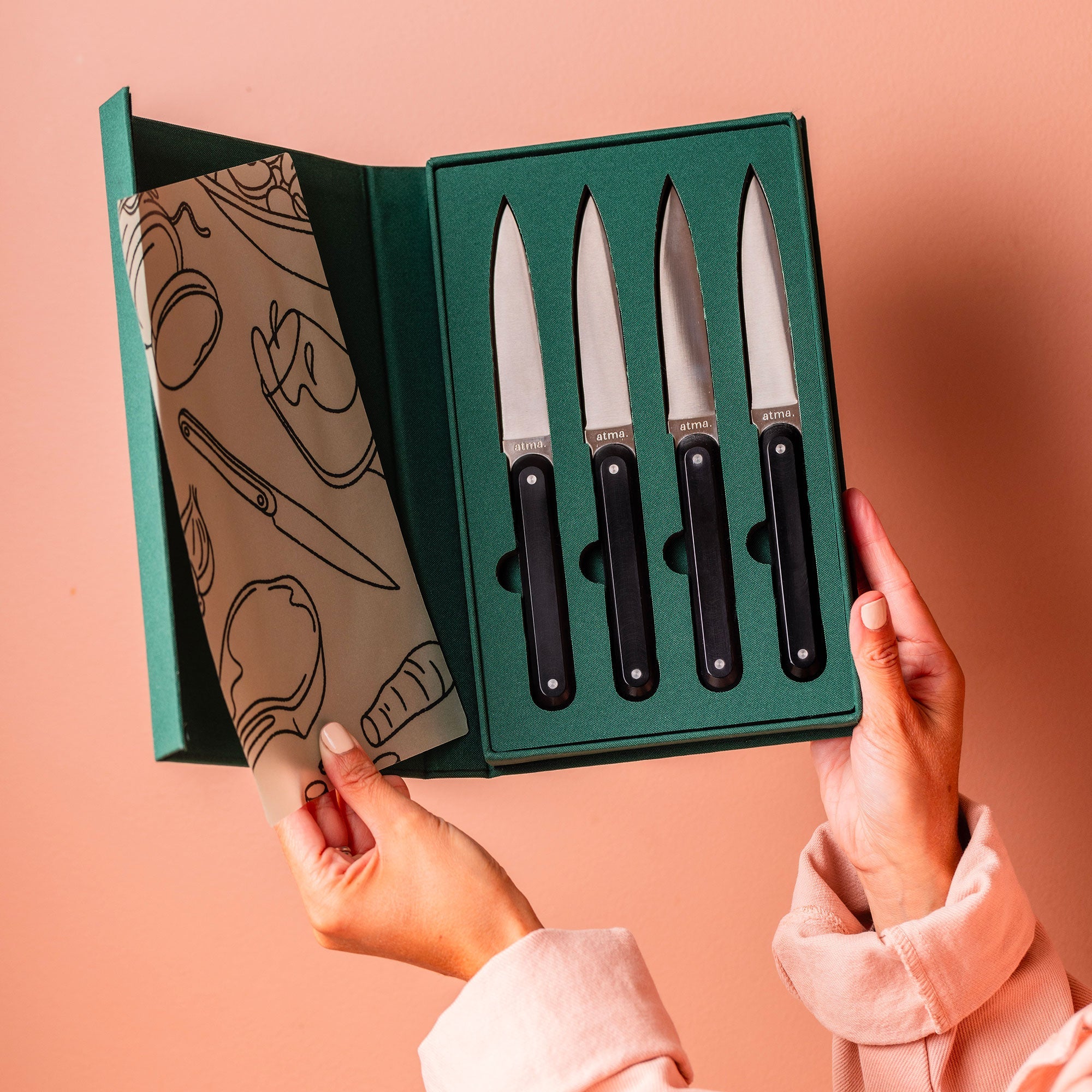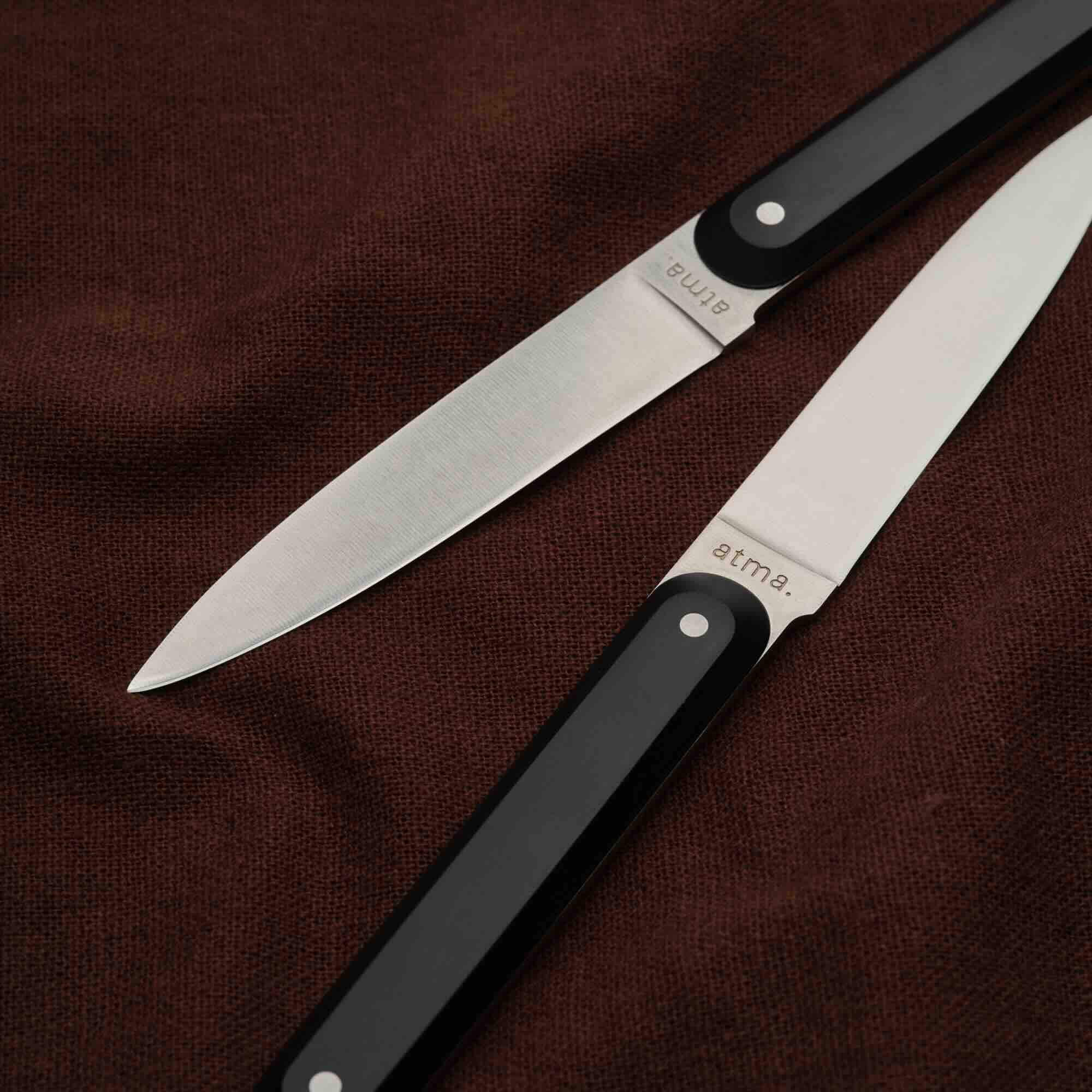Mit ihrer Schachtel und dem Seidenpapier sind Atma-Messer wie geschaffen zum Verschenken. Ein Geschenk, an das man sich erinnert, das man ein Leben lang behält und das einen besonderen Anlass würdigt: Unübersehbar. Bei uns ist es der neue Klassiker für einen geliebten Menschen, der einzieht, die Hochzeitsliste oder den Geburtstag von jemandem, der gerne Gäste bewirtet.