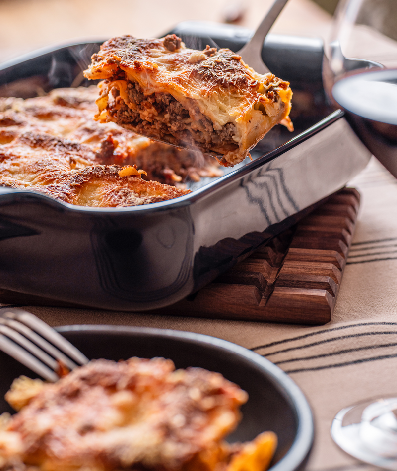 Dank der besonders widerstandsfähigen Glasur können Sie Ihre Portionen sogar direkt in der Form schneiden, ohne Kratzer zu riskieren. Das Ergebnis: Gerichte, die immer servierbereit sind – und bewundert werden.