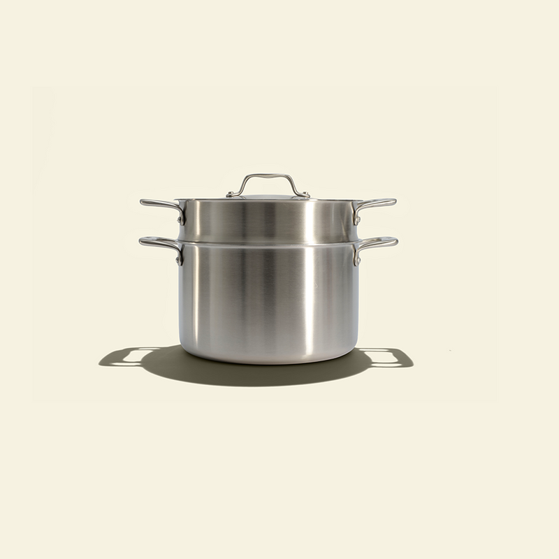 Der Schlüssel zum Kochen mit Edelstahl liegt in der Temperaturkontrolle. Edelstahl erhitzt sich schnell und gleichmäßig – beginnen Sie daher mit mittlerer Hitze. Geben Sie anschließend das Fett hinzu und lassen Sie es erhitzen, bevor Sie die Lebensmittel in die Pfanne legen.