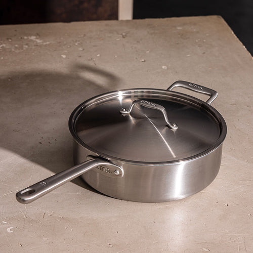 Weil dieses Material die Art und Weise, wie wir kochen, revolutioniert und Bratpfannen ermöglicht, die neue Maßstäbe setzen. Wir verwenden 2,3 mm dicken 3-lagigen Edelstahl, der aus 3 Schichten besteht: