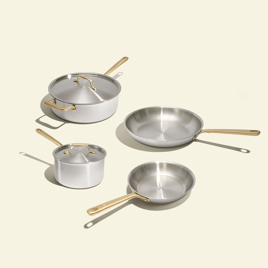 7-teiliges Edelstahl-Kochgeschirrset mit goldenen Griffen