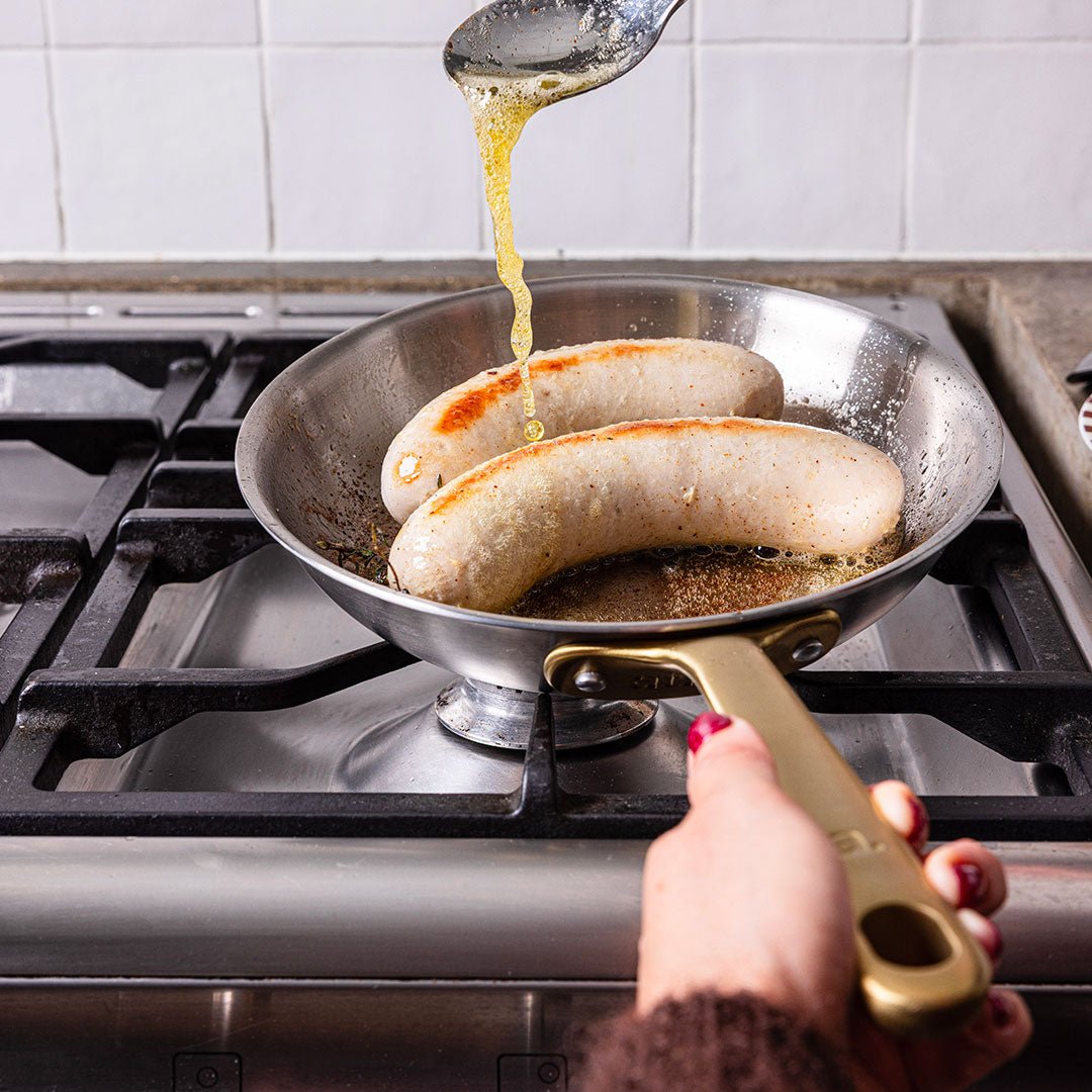 Vertraut uns aber nicht einfach blind. Schaut euch in unseren Tutorials hier an, wie man kocht, ohne dass etwas anbrennt, und lest unsere Artikel über das Kochen mit einer Edelstahlpfanne. Wir haben sogar mit Spiegeleiern experimentiert – ein Beweis dafür, dass ihr mit Edelstahl wirklich (fast) alles zubereiten könnt. Ihr werdet sehen: Mit einer Edelstahlpfanne gelingt euch großartiges Essen leichter, als ihr denkt.