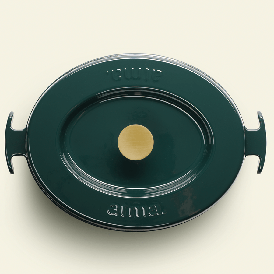 Von Atma in klassischer ovaler Form entworfen, genau wie ihr es euch in unserem Co-Creation-Fragebogen gewünscht habt. Hergestellt in Nordwestspanien, in einer familiengeführten Gießerei mit über 60 Jahren Erfahrung. Passt zu allen Kochflächen, ist ofen- und spülmaschinengeeignet. Und wie immer mit lebenslanger Garantie.