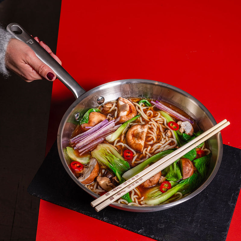 - 3-lagiger 18/10 Edelstahl über die gesamte Oberfläche – für schnelles, gleichmäßiges Erhitzen und köstliche Ergebnisse.