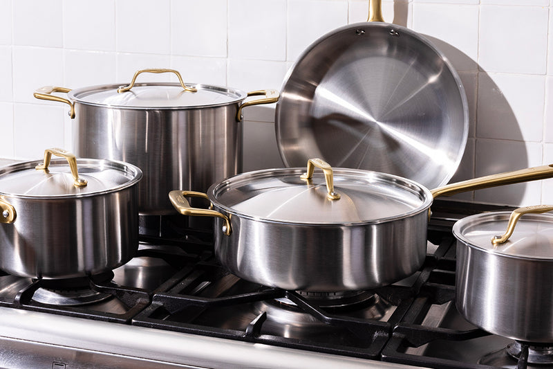 Comme toujours, il faut commencer par bien choisir le revêtement. Les différentes options qui s’offrent à vous sont : l’acier inoxydable, la fonte, le fer et les revêtements anti-adhésifs. Alors ici, comme pour l’ensemble de nos ustensiles nous ne jurons que par l’acier inoxydable. Sa finition, sa qualité, son fond thermo-diffuseur et ses 3 couches superposées le rendent juste incomparable ! En effet l’inox 3-plis que nous utilisons ne contient aucun produit chimique pour vous offrir des cuissons saines, permet une montée en température rapide et homogène pour des cuissons savoureuses et précises et enfin, ultra-résistant, assez pour vous accompagner une vie.